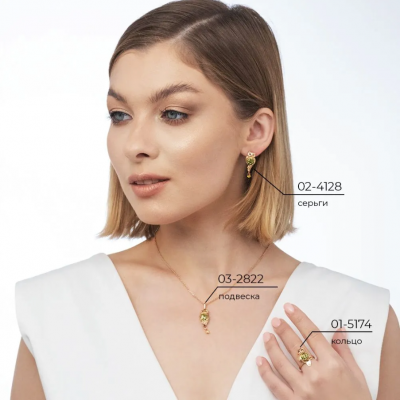 первая страница > Ювелирные изделия > PLATINA Кольцо "Сова" из красного золота 585 пробы c хризолитом, цитринами, хромдиопсидами